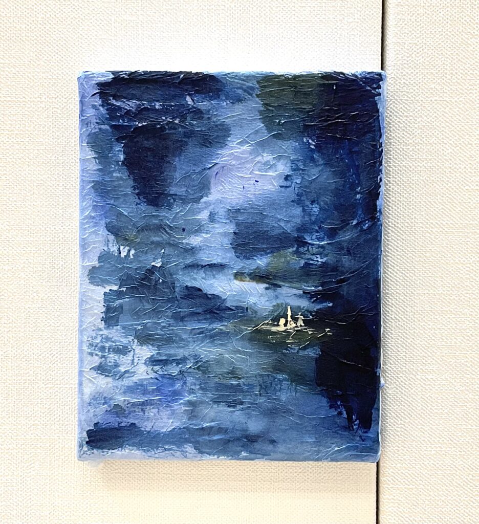 2016年から、ティッシュで色を重ねる独自の技法を “tissuecolor®︎” と名付け、制作を続けている。きっかけは、仕事に疲れ、心の整理のために描いていた夜。混沌とした画面にティッシュを重ねた瞬間、ふわっと優しさが生まれ、心が軽くなるのを感じたのが始まりだった。以後、ティッシュを貼る、重ねる、水を含ませるという行為は、自分と向き合う時間になり、やがてそれは「記憶を塗り重ねる」ような感覚に変わっていった。忘れられない記憶も、繰り返し重ねることで、まるで「手当て」をしているように和らいでいく。この“手触り”の感覚が、私の作品における重要なテーマになっている。